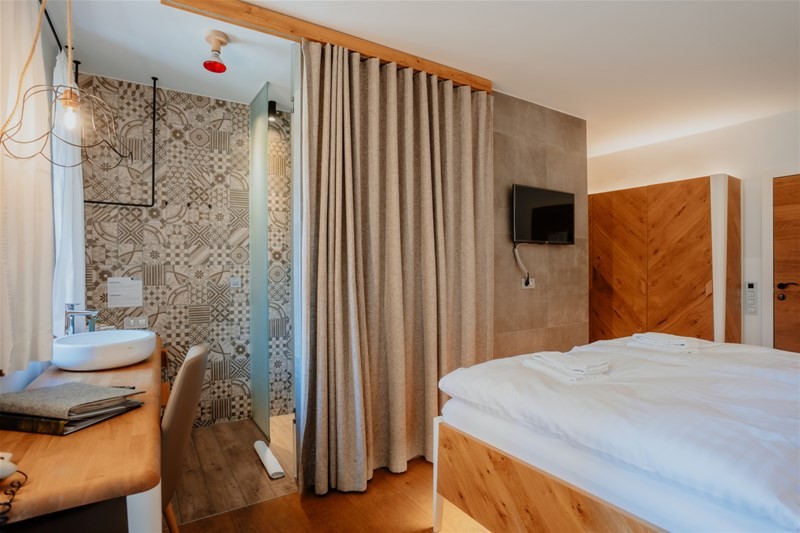 Las 32 habitaciones modernas del Hotel Plesnik son cómodas y elegantes, ofreciendo una combinación de encanto alpino tradicional y confort moderno. Las habitaciones son acogedoras y brindan hermosas vistas al valle de Logar o a las montañas circundantes. Están diseñadas con materiales naturales, como muebles de madera y colores cálidos, creando un ambiente relajante.