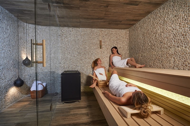 - Uso del centro de bienestar con saunas, baño de vapor, jacuzzi, piscina exterior y sala de descanso