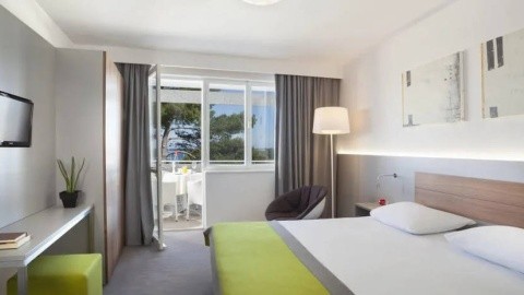 Travnaté, kamenité a betonové pláže od 50 m Příjemný rodinný hotel Turistický vláček do centra Poreče Animace pro děti i dospělé Více o Materada Plava Laguna