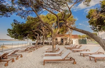 Hned u skalnaté pláže V borovém lese Wellness centrum Možnost bezlepkové stravy Více o Pinija