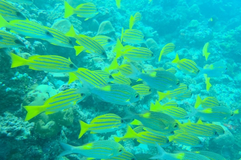 Nádherná, čistá pláž a průzračné moře, hodně ryb, rejnoci, žraloci, 3 želvy.