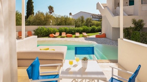 Oblázková pláž jen přes cestu Pozvolný vstup do moře Restaurace a bary v okolí Možnost pokojů s privátním bazénem Více o Blue Style Resort