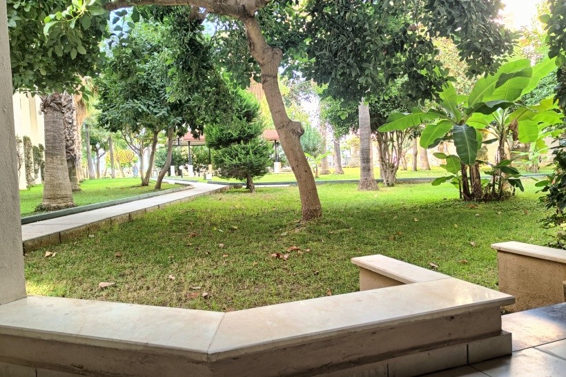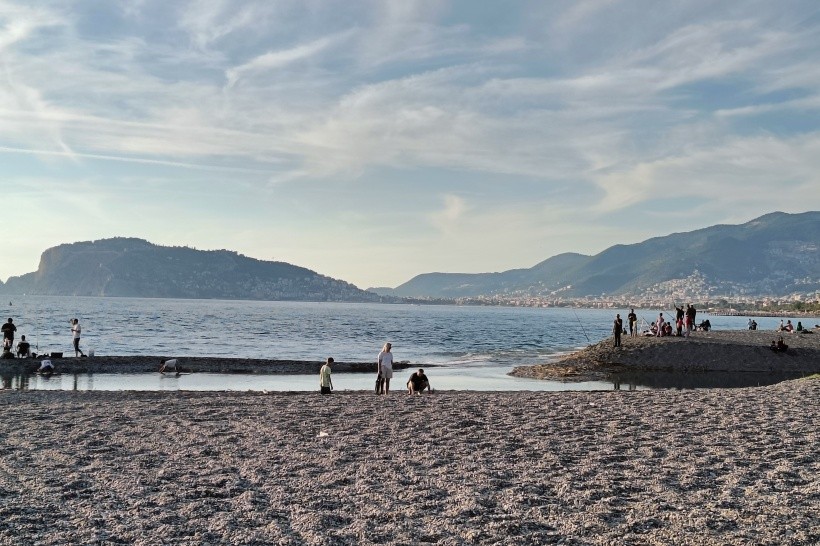 Oblázková pláž s dostatkem lehátek. Čistá voda. Výhled na Alanyu a hory. Dva bary (mimo sezónu 1) v zahradě u pláže jsou zahrnuty v ceně all inclusive.