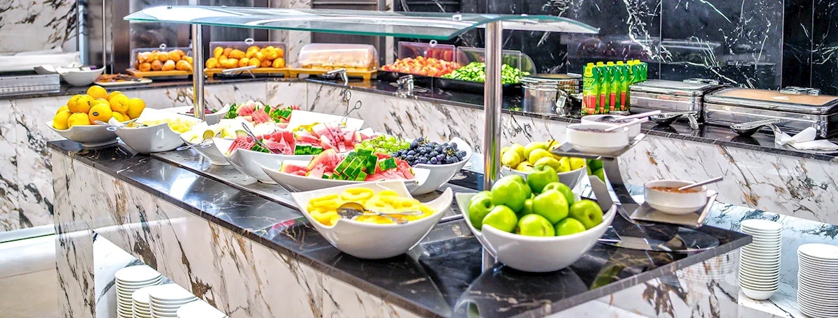 Strava pestrá, dalo se vybrat , hlavně zelenina, zákusky, ovoce. Hlavní jídlo studené.