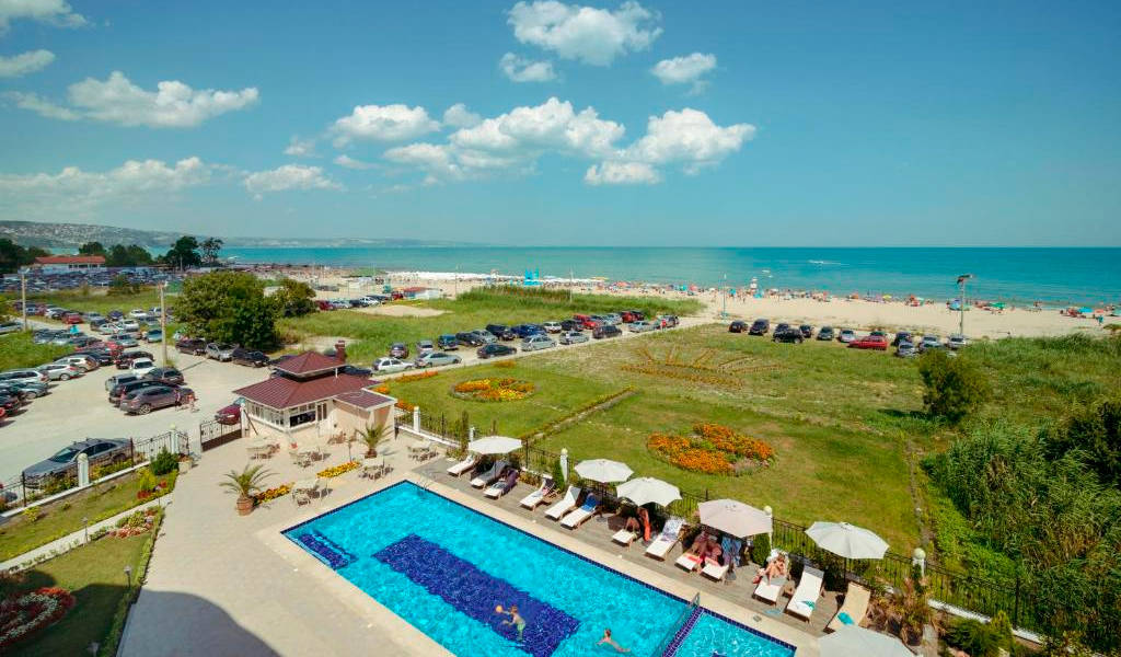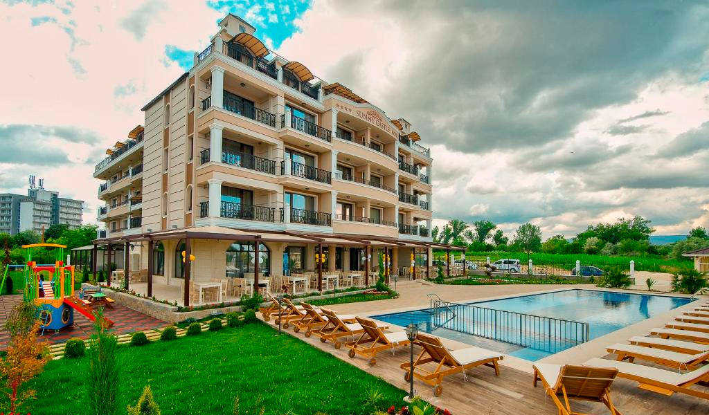 Objevte Sunny Castle v Kranevu, Bulharsko, kde se komfort setkává s kouzlem. Užijte si prostorné pokoje, osvěžující bazén a lahodné stravování, jen kousek od pláže. Ideální pro rodiny a páry hledající odpočinek.