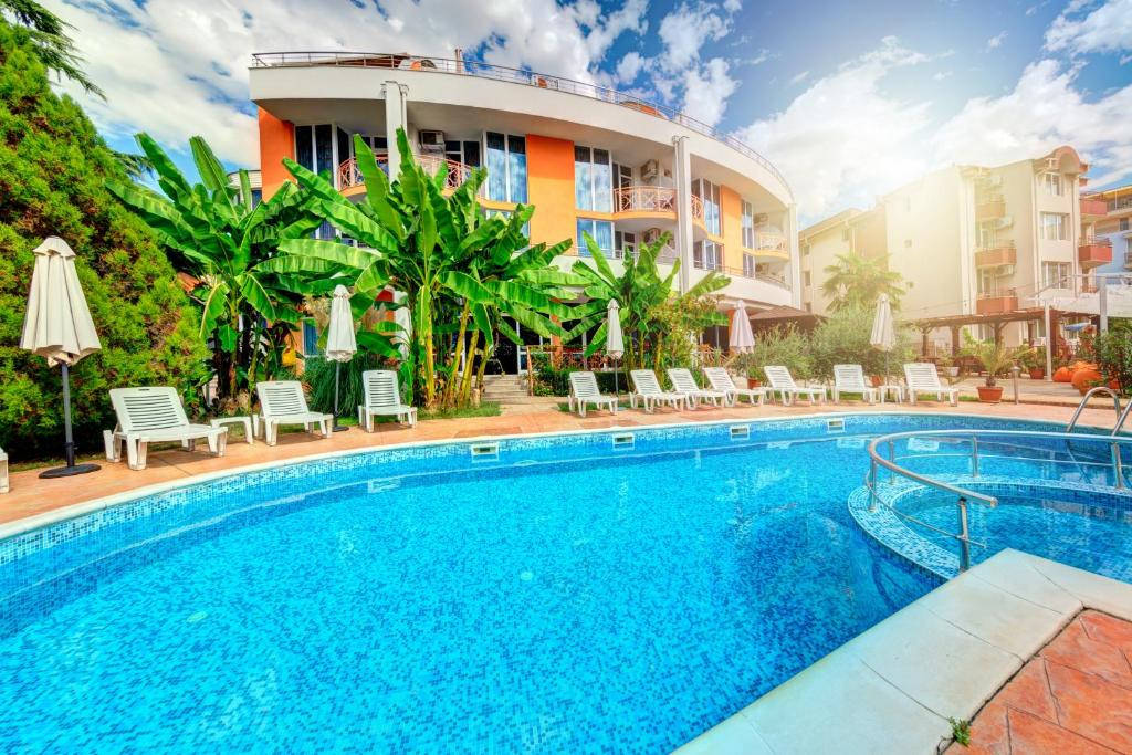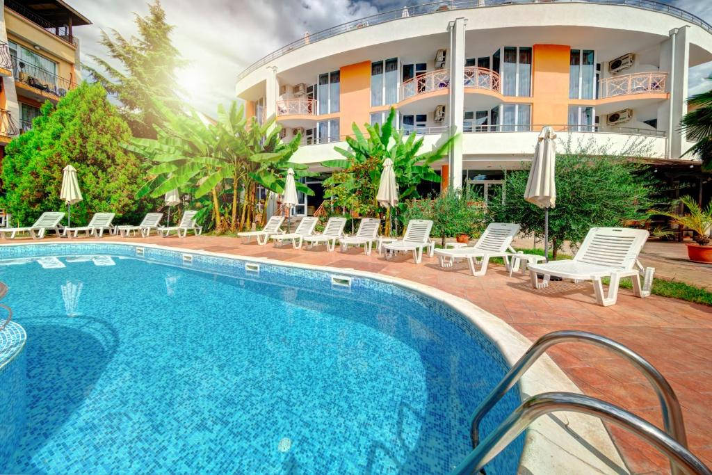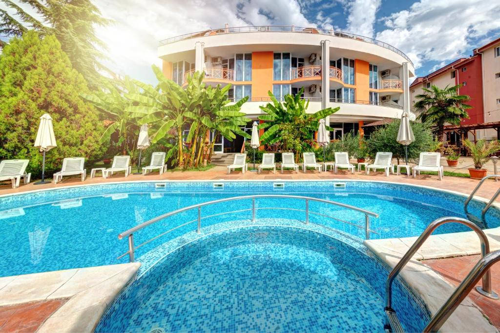 Dobře vedený, menší prázdninový hotel je situován na klidném místě, mezi letoviska Ravda a historickým Nessebarem, jen 80 m od pěkné písčité pláže. Nákupní možnosti a zábavu mají hosté jen několik minut chůze od hotelu (obchody, restaurace, půjčovny automobilů a motocyklů, kavárny, vodní sporty na pláži, sportoviště).Vybavení