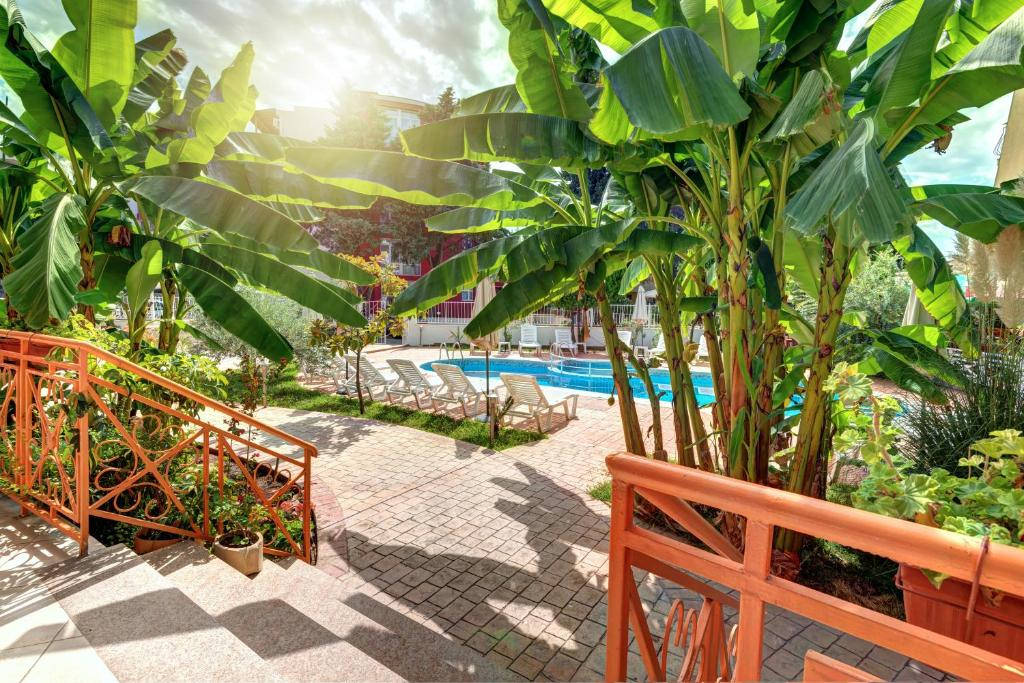 Příjemný rodinný hotel nabízí ubytování v elegantní patrové hlavní budově a přilehlé depandanci, obklopené pečlivě udržovanou zahrádkou. Klientům je k dispozici menší vstupní hala s recepcí, trezory (za poplatek) a lobby barem, hlavní restaurace, WiFi připojení (v lobby za poplatek), obchůdek se suvenýry, úschovna zavazadel, společenská místnost se satelitní TV, venkovní bazén s dětskou částí, bar u bazénu, opalovací terasa (lehátka a slunečníky zdarma) a parkoviště.Ubytování