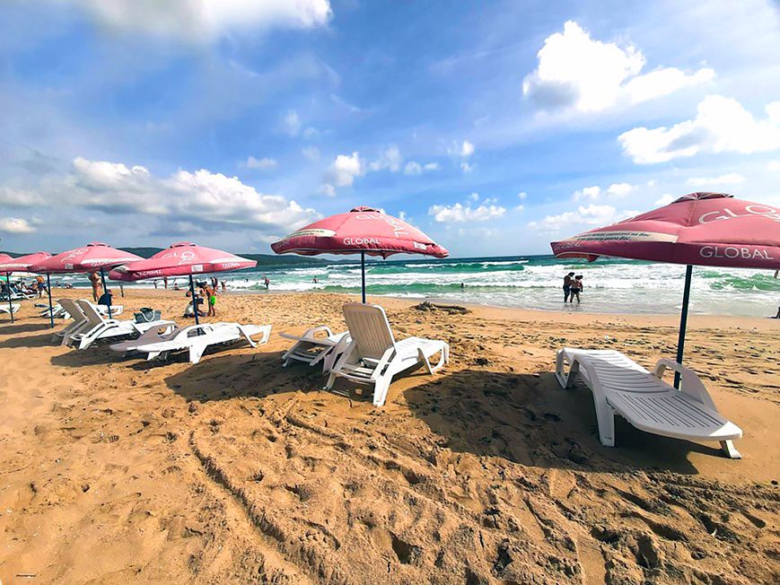 dispozici služby plážových barů a lehátka se slunečníky (za poplatek).