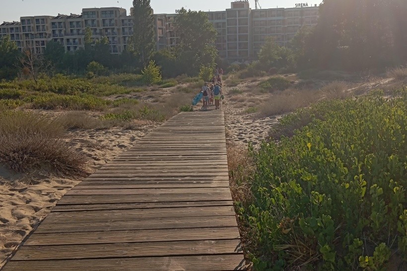 Bylo to trochu pěšky, ale pláž je krásná, s jemným měkkým pískem a mírným svahem. Jedinou nevýhodou je, že foukal opravdu silný vítr.
