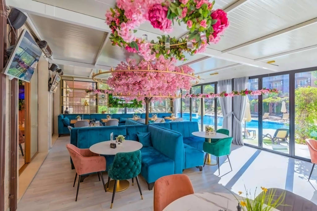 Hotel se nachází v resortu Slunečná pláž, jen kousek od písečné pláže. Komplex má dobře vyvinutou infrastrukturu - na jeho území jsou bazény, venkovní a vnitřní vířivky, masážní místnosti, posilovna, kavárny a restaurace. K dispozici jsou studia a apartmány.