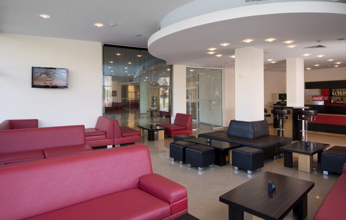 Hotel má bazén, k dispozici je bar (s možností all inclusive) a vedle recepce si můžete dát zdarma studené nápoje.
