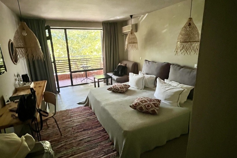 Pokoje jsou krásně veliké a prostorné, ale naprosto tam chybí úložný prostor. Oblečení jsme odkládali na rozkládací gauč. Ob den doplněna láhev vody na pokoj. Úklidová četa začala nabíhat kolem 9-9:30 hod. (takže nešlo dospat to, že jste šli spát nejdříve v 11 večer kvůli hlasité hudbě). Největší nevýhoda pokoje je za mě, že není nijak odhlučněný = balkon a vstupní dveře mají i mezery mezi futry a opravdu slyšíte všechno. Hlavně lidi, kteří se nad ránem vracejí z jiné párty domů (na pláži totiž je klub, který jede až do rána. A i hudba z tohoto klubu je slyšet přes zavřené balkonove dveře).