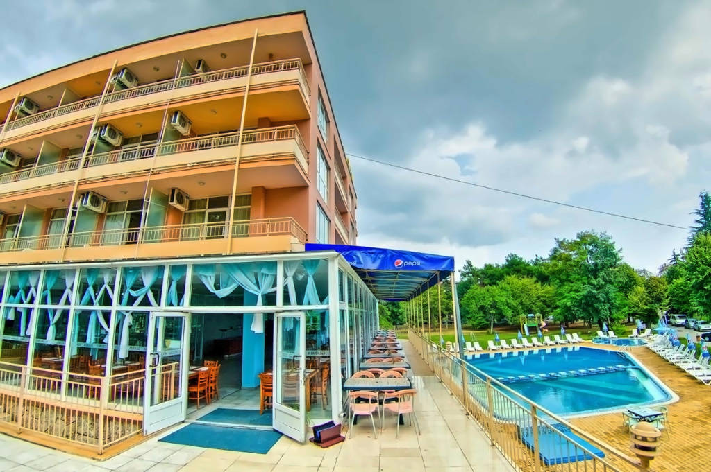 Příjemný, menší prázdninový hotel je situován na klidném místě, nedaleko centra malebného lázeňského letoviska Sv. Konstantin a Helena, jen 10 minut chůze od pěkné písčité pláže. Nákupní možnosti a zábavu mají hosté v bezprostřední blízkosti ubytování (obchůdky, taverny, restaurace, půjčovny automobilů a motocyklů, vodní sporty na pláži, kavárny). Transfer z mezinárodního letiště Varna trvá 30 minut.Vybavení