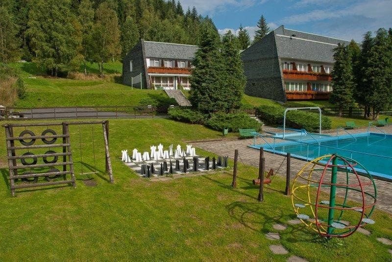 Možnost využití vířivky a sauny za rozumný poplatek je dokonalí relax, v letních měsících je možnost koupání ve venkovním bazénu pro hosty, opět žádný velký luxus ale čistá horská voda nás dokonale osvěžila.