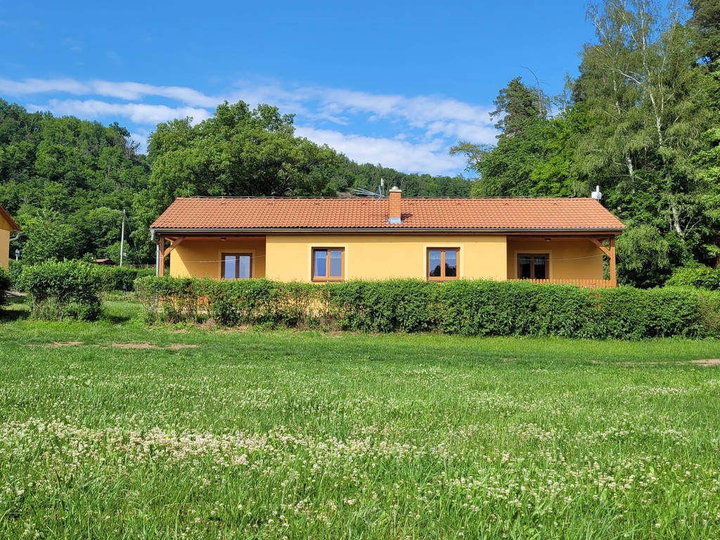 Samostatná polovina dvojchaty (až pro 5 osob). Ložnice s manželskou postelí pro 2 osoby a patrová postel. Gauč v jídelně.
