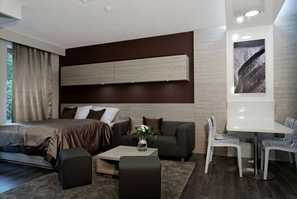 Každý apartmán disponuje ložnicí, obývací místností s LCD televizorem, koupelnou s vanou a sprchovou zástěnou, WC a plně vybavenou kuchyní (trouba, myčka, lednice, mikrovlnná trouba, kuchyňské nádobí). Apartmány mají také lodžii a přístup do hotelu je zabezpečen kartovým systémem.