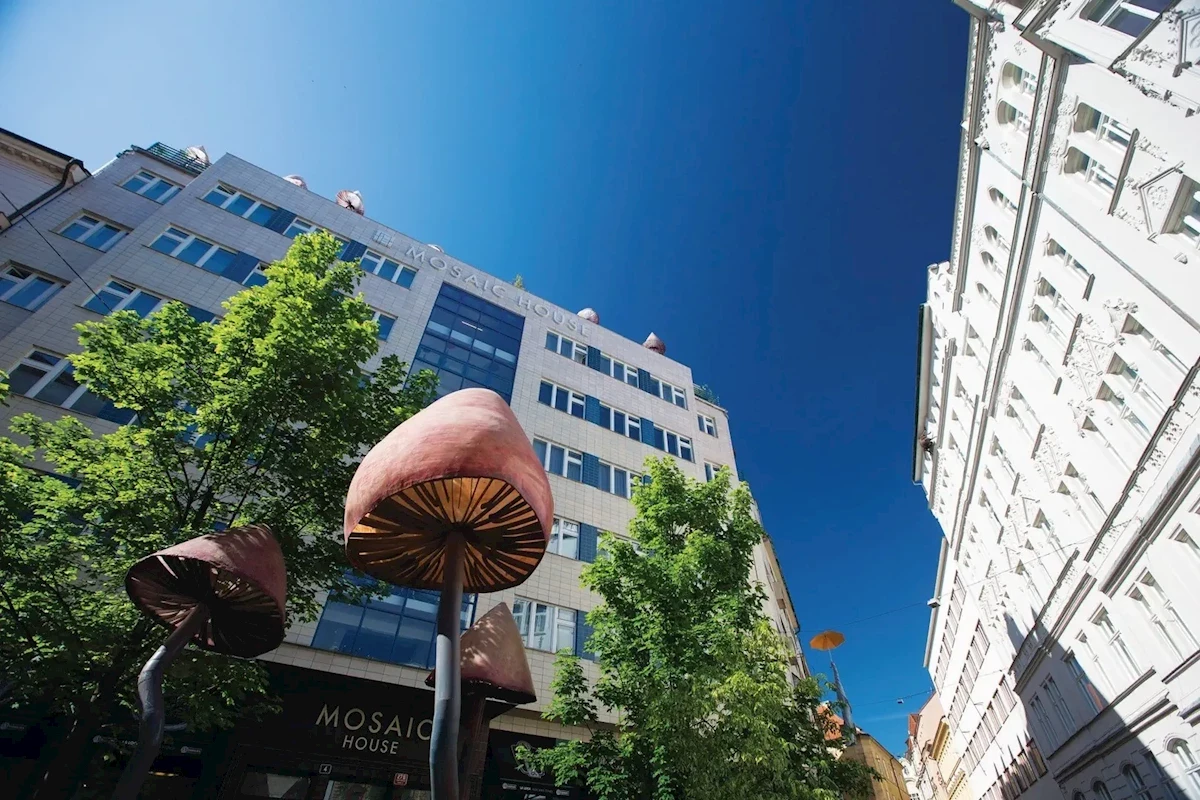 Mosaic House hotel se ve funkcionalistické budově otevřel v roce 2010 jako vůbec první český zelený hotel se systémem využívání šedé vody a zpětného získávání tepla z odpadních vod a fungující s obnovitelnými zdroji energie a navíc se chlubí špičkovým designem a fasádou pokrytou mozaikou ze třicátých let, která je památkově chráněná.