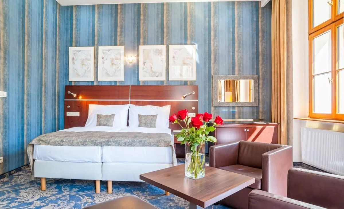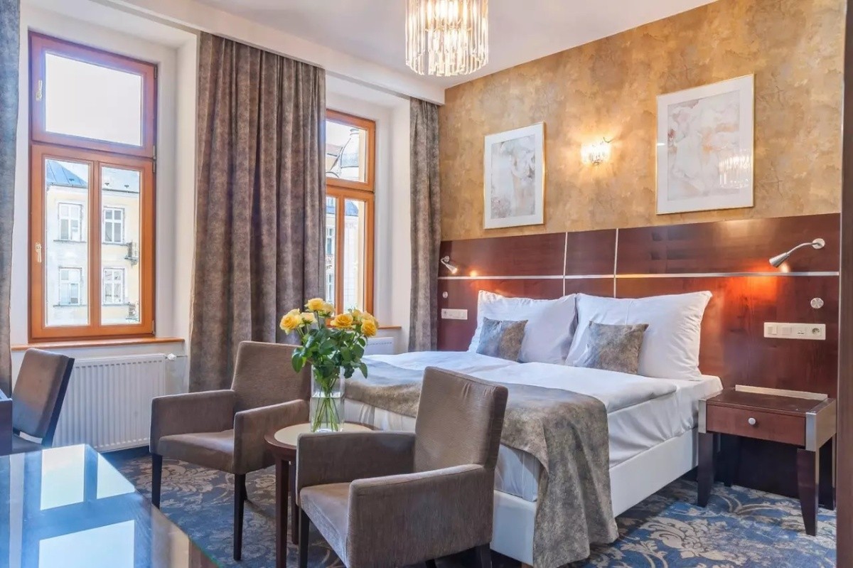 Pokoje Economy Plus: Jde o menší útulné pokoje s výhledem do dvora nebo Husovy ulice. Pokud chcete nejnižší cenu za ubytování, jsou pokoje Economy Plus jasnou volbou. Je důležité zmínit, že ke všem pokojům v této kategorii vedou schody, nejsou tedy bezbariérové.