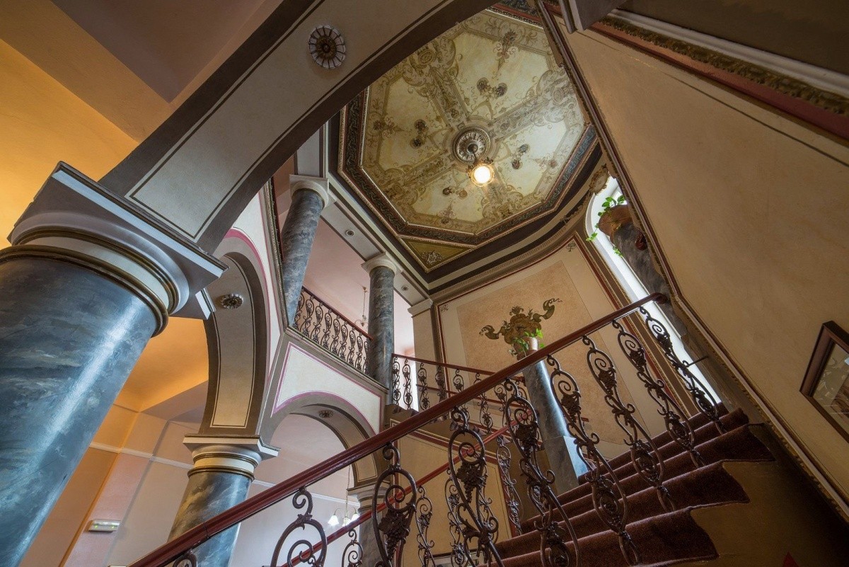Hotel se nachází na klidném místě trochu v ústraní, ale přitom kousek od centra města. Jedná se o historickou budovu s jedinečnou architekturou interiérů. Součástí hotelu je vlastní léčebné oddělení.