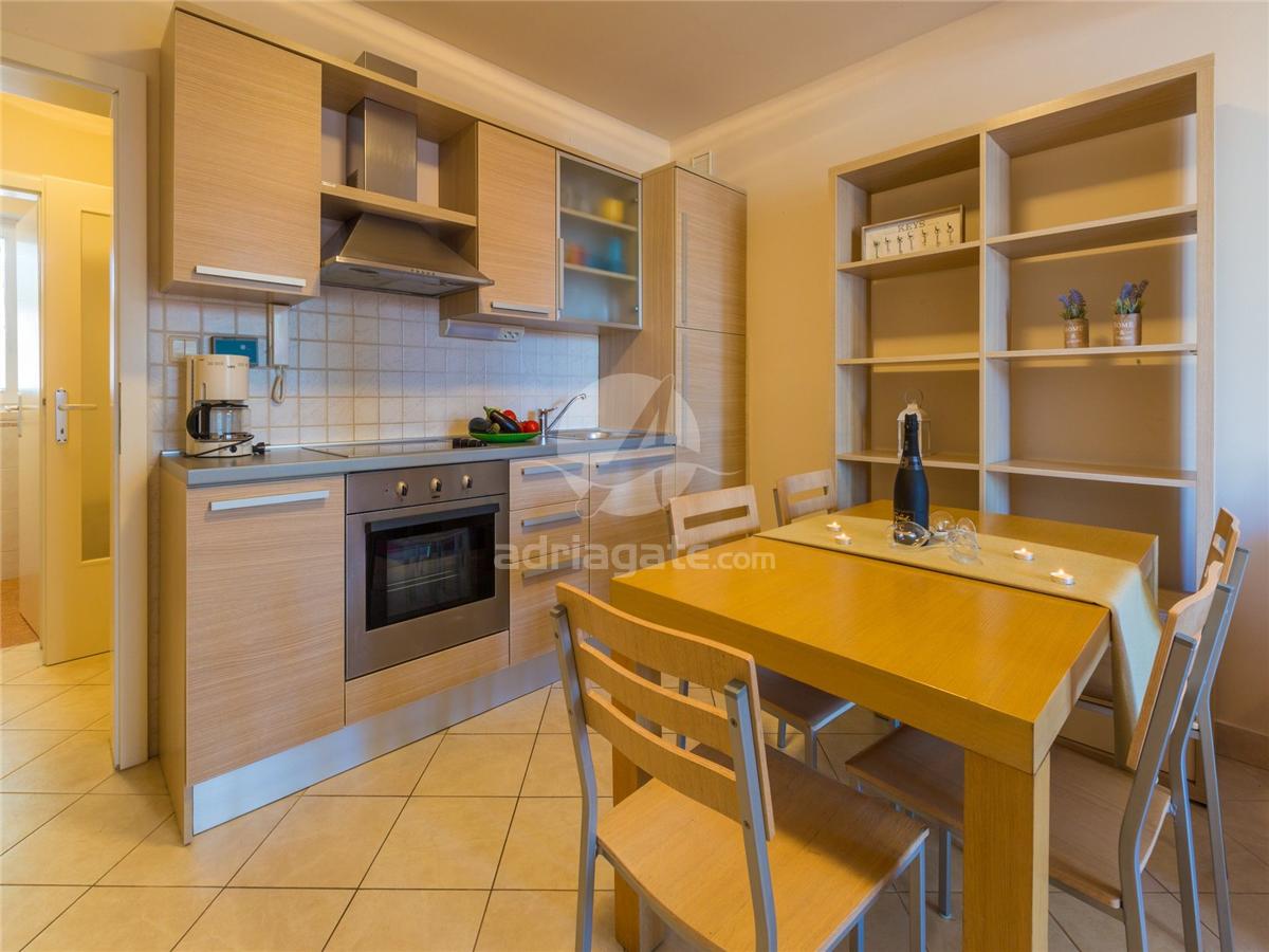 Apartmány majú plne vybavené kuchyne: kávovar, chladnička, trúba, rýchlovarná kanvica, toaster. Kúpelne so sušičom na vlasy. Ďalšie vybavenie: TV SAT, wifi, posteľná bielizeň, uteráky. Klima a wifi bez poplatku. APT 2+2 pre 4 osoby majú 40 - 45m2 + balkón alebo terasu 4m2, 2-lôžková spálňa, obývacia izba s gaučom pre 2 osoby a kuchyňou, kúpelňa. APT 4+2 pre 6 osôb 52m2 + balkón alebo terasa 4m2, dve 2-lôžkové spálne - jedna s manželskou posteľou, druhá so samostatnými lôžkami, obývacia izba s kuchyňou, kúpelňa. APT 6 pre 6 osôb 65m2 + balkón alebo terasa 6-11m2, dve 2-lôžkové spálne - jedna s manželskou posteľou, druhá so samostatnými lôžkami alebo poschodovou posteľou, obývacia izba s kuchyňou, kúpelňa.