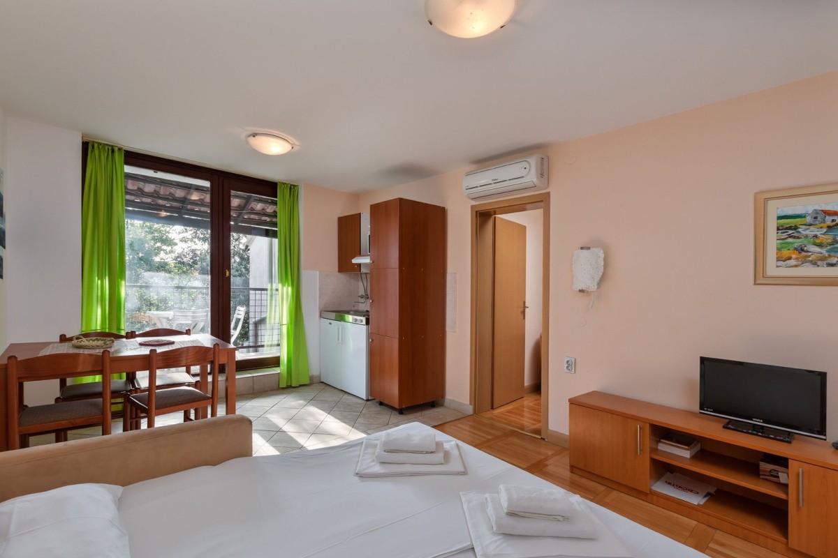 14 jednoduše, funkčně vybavených apartmánů pro nenáročné klienty. 6x typ 1 Ulika 4 pro 4-5 osob (42 m2), 8x typ 2 Ulika 5 pro 4-6 osob (50 m2). Všechny apartmány mají malý kuchyňský kout, oddělenou dvoulůžkovou ložnici, přistýlky pro 2-3 osoby nebo 2 rozkládací gauče, klimatizaci, koupelnu a WC, balkon, wifi. Apartmán může být dvoupodlažní, s točitým schodištěm nebo vestavěným patrem.