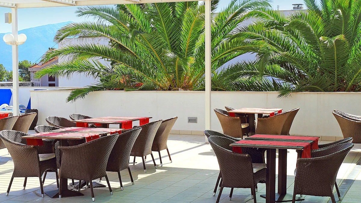- terasa s výhledem na bazén
