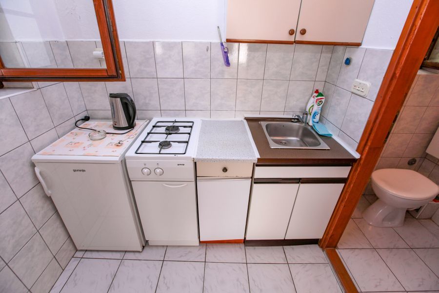 ložnice: manželská postel 1x,noční stolky ložnice: postel 2x,noční stolky,skříň kuchyně: nádobí,varná deska plynová koupelna: sprchový kout,WC balkon/terasa: boční výhled na moře,posezení Internet: WiFi,zdarma