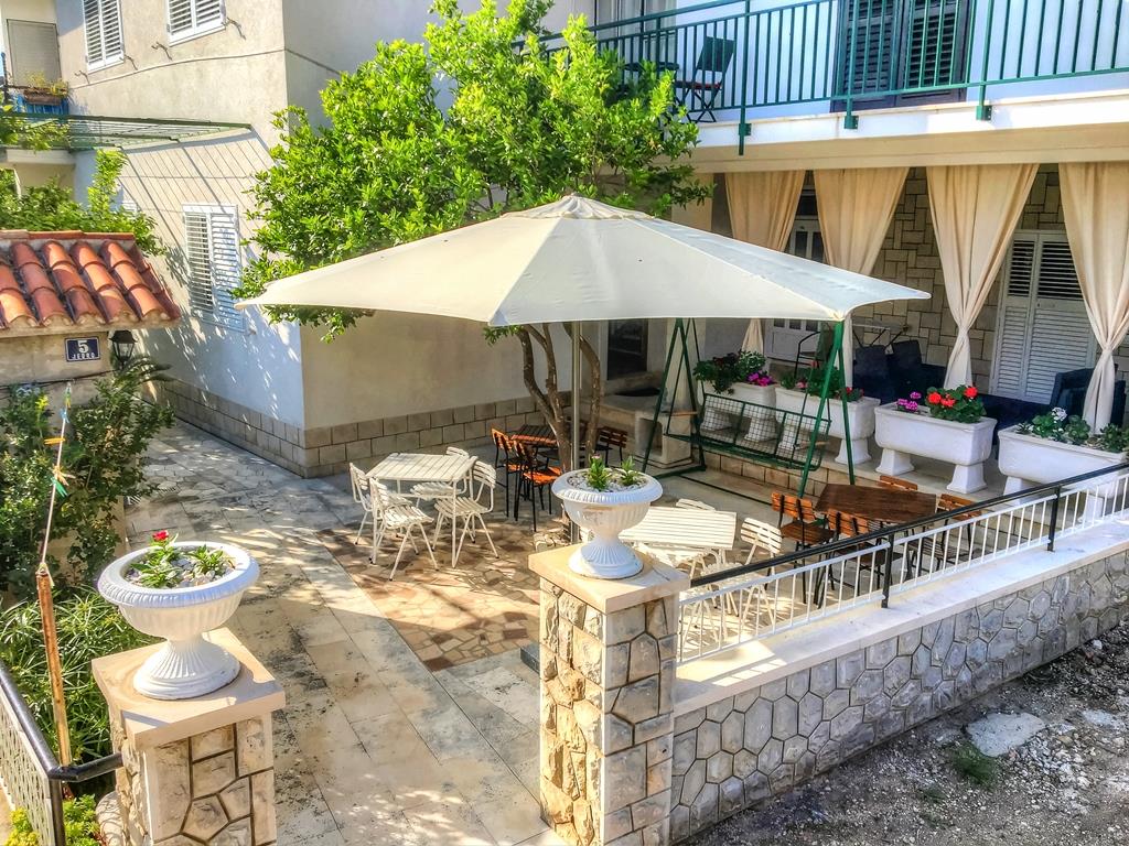 K dispozici jsou 2-4 lůžková studia a 4-5 lůžkové apartmány. VYBAVENÍ - každé studio nebo apartmán je vybaveno kuchyňským koutem s vlastním sociálním zařízením, balkónem nebo terasou. Většina studií i apartmánů má výhled na moře (přímý nebo boční) a TV. Před vilou je posezení s grilem stíněné stromy. Některá studia mají možnost využití Wi-Fi za poplatek 5,- Euro/týden a klimatizaci za poplatek 5,- Euro/den.Strava