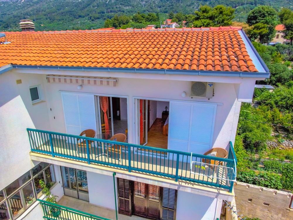Vila stojí asi 150 m od pláže a cca 200 m od centra letoviska. Letovisko leží v jižní části Makarské riviéry (cca 60 km jižně od Makarské) přímo na úpatí pohoří Rilič. Gradac patří pro svou dlouhou pláž Gornja Vala s bílými oblázky a průzračnou vodou k nejkrásnějším letoviskům této oblasti.Vybavení