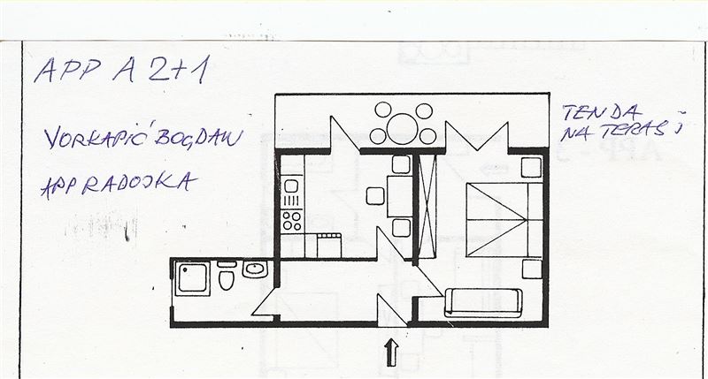 Moderně zařízené, světlé apartmány s možností ubytování až pro 3 osoby jsou vybaveny sociálním zařízením (sprcha, toaleta, bidet, fén), ložnicí, obývacím pokojem s kuchyňským koutem (základní nádobí, chladnička, vařič, kávovar, toustovač, rychlovarná konvice) a terasou s posezením. Dětská postýlka a vysoká jídelní židlička je k dispozici na vyžádání. Ubytování je nekuřácké.Strava