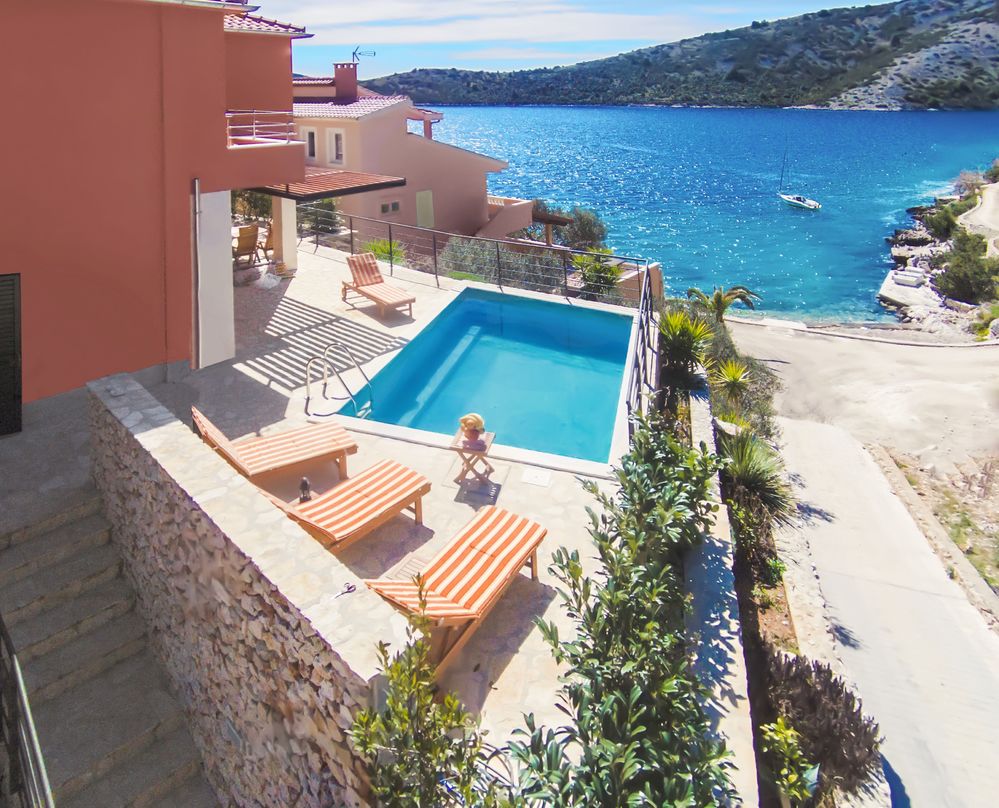 Klimatizace zdarma, WiFi internet zdarma, Bazén, Domácí mazlíčci za poplatek, Gril k dispozici, K dispozici pračka, K dispozici myčka na nádobí, Výhled na moře z terasy apartmánu, Možnost kotvení vlastního člunu (na dotaz), K dispozici motorový člun,