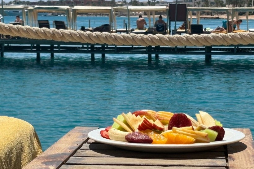 zákusky (17.00–18.00), bar na pláži je otevřen (9.00 do západu slunce), místní