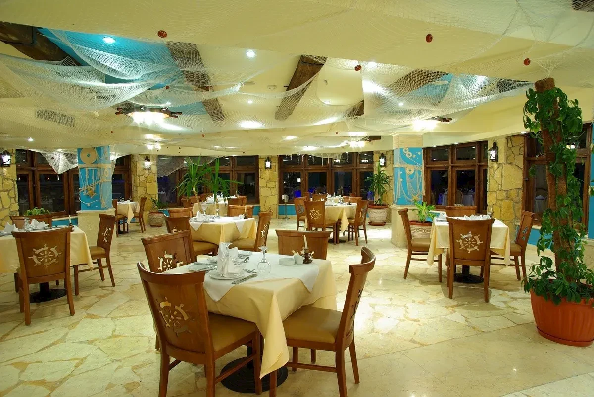 Stravě nelze v podstatě nic vytknout, nabízený sortiment byl poměrně široký, část jídel byla připravována průběžně před očima. Celkově se zlepšuje nabídka uzenářských výrobků, (klesá podíl drůbežího separátu), v jídelníčku kromě běžných jídel z kuřat a hovězího byly ve větší míře i mořské plody, losos, krocan. K hlavním jídlům omezeně brambory, hlavně týže a těstoviny. Hranolky byly k dispozici v odpoledním bufetu v dostatečné míře. Nabídka zeleniny, zákusků a ovoce pestrá. Víno pouze k jídlu z velkých bagů, ale vypít se dalo. Pivo rozlévané lahvové resp. plechovkové. V jídelně překvapily dva automaty na kávu, takže si k dortu mohla vypít káva po obědě i večeři. Plážový a bazénový bar běžnou úroveň nealko, piva a míchaných koktejlů a drobné občerstvení.