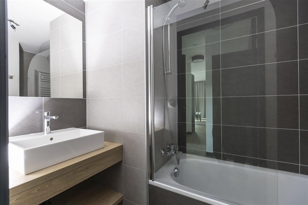 Apartmán FAMILLE se 2 ložnicemi + obývák pro 5 - 6 osob - 44-53 m² - 1. ložnice se 2 samostatnými lůžky nebo s manželskou postelí, 2. ložnice se palandou pro 2 osoby, obývací pokoj s kuchyňským koutem a rozkládacím gaučem pro 2 osoby, koupelna (vana nebo sprcha, WC), balkon/terasa.