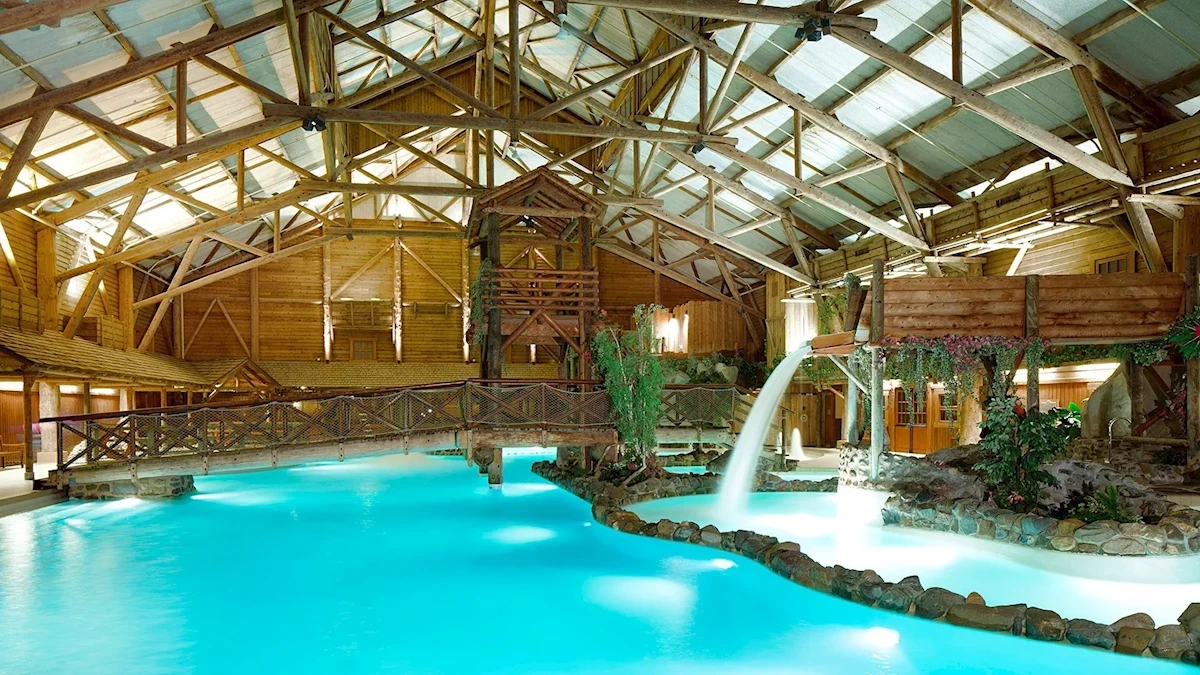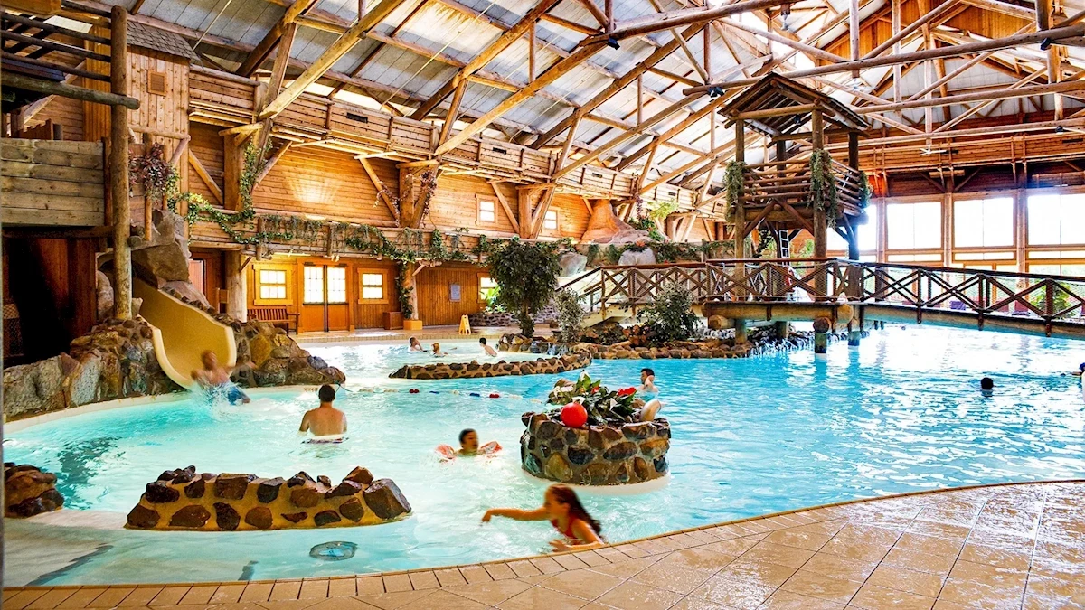 - basen kryty ze zjeżdżalnią, podgrzewany, słodka woda, tymczasowo nieczynny w terminach: 05.01-27.03.2026 r. i 16.11-20.11.2026 r.
