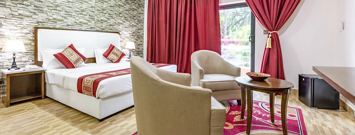 Hotel otoczony tropikalną zielenią oferuje zakwaterowanie w 72 przestronnych pokojach, rozmieszczonych w kilku 2-kondygnacyjnych budynkach. Każdy pokój komfortowo urządzony i wyposażony w łazienkę (prysznic, wc, suszarka do włosów), klimatyzację sterowaną indywidualnie, umeblowany balkon lub taras , TVsat, minibar (płatny), telefon, sejf, zestaw do przyrządzania kawy i herbaty. Pokoje typu standard dla 2 osób, z możliwością 1 dostawki dla osoby dorosłej lub dziecka, łóżka pojedyncze typu twin.Położenie
