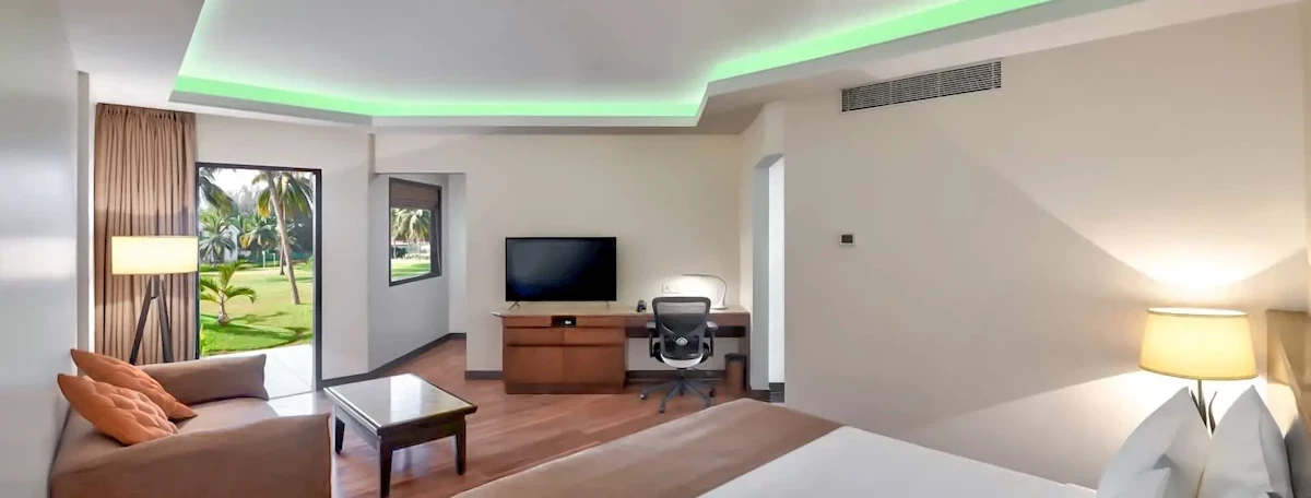 Recepcja 24 h, kantor wymiany walut, winda, 3 restauracje: główna Fig and Olive położona przy basenie, serwująca dania kuchni międzynarodowej i lokalnej, sezonowa restauracja Beach Rill położona przy plaży oraz Zest Cafe (24 h), oferująca a’la carte dania kuchni goańskiej, a także lobby bar. Na terenie hotelu znajduje się duży basen o nieregularnym kształcie z wydzieloną częścią dla dzieci – leżaki, parasole oraz ręczniki kąpielowe dostępne przy basenie bezpłatnie. Za dodatkową opłatą: salon piękności, room service 24 h, pralnia, lekarz, usługi opiekunki dla dzieci.