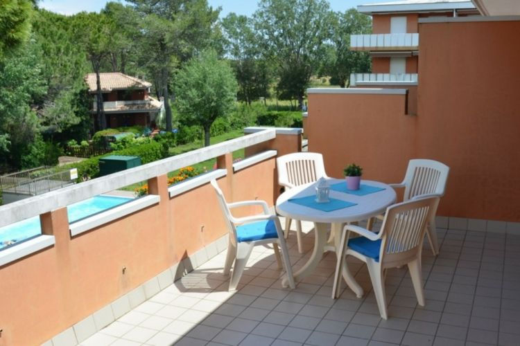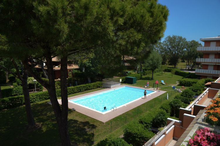 Prázdninový komplex třípodlažních budov se nachází ve velmi zelené a klidné oblasti, pouhých 150 m od pláže, kam se dostanete přes pohodlný most pro pěší, aniž byste museli přecházet silnici. Strukturu tvoří dvoupokojové a třípokojové byty s velkými terasami, zahradou, bazénem a vyhrazenými krytými parkovacími místy. V okolí je dětské hřiště, pláž Pluto, lékárna, bary a restaurace. Procházkou se dostanete k majáku i trajektu do sousedního Lignana. Malá domácí zvířata jsou povolena. PLÁŽOVÝ SERVIS JE V CENĚ POBYTU. LOŽNÍ PRÁDLO A RUČNÍKY V CENĚ POBYTU.