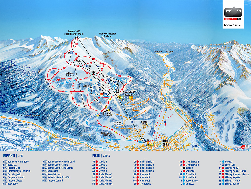 Lyžařské středisko Bormio se nachází v severní Itálii nedaleko švýcarských hranic. Toto středisko se proslavilo konáním Mistrovství světa v alpském lyžování v letech 1985 a 2005. Středisko nabízí sjezdovky všech obtížností, tratě červené obtížnosti ovšem převládají a černé sjezdovky středisko téměř nenabízí. Pro všechny milovníky adrenalinu ovšem nabízí možnost freeridu. Středisko Bormio je jedno z menších, proto je tu méně lidí a menší provoz, na kvalitě areálu to ale neubírá. Mimoto se zde nachází i lázně Bormio Terme, kde se nachází vnitřní a venkovní bazény a teplota vody se pohybuje od 38°C do 41°C.