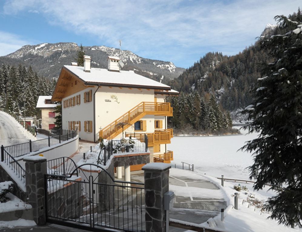 Apartmány Villa Edelweiss *** se nachází ve velmi klidné a panoramatické části Alleghe, přibližně 1,2 km od centra města a od nástupní stanice lanovky na skiareál Civetta. Nabízí ubytování pro 2 až 4 osoby, vybavenou kuchyň, balkon s výhledem na jezero, Wi-Fi připojení a parkování zdarma. Díky své vyvýšené poloze nad jezerem Alleghe poskytují nádherné výhledy na okolní vrcholky Dolomit a romantickou atmosféru, ideální jak pro zimní dovolenou na lyžích, tak pro letní pobyt u vody a na horách. K lyžařskému areálu se lze pohodlně dostat autem během několika minut, případně pěšky. V letních měsících láká jezero a okolní příroda k pěším túrám, cyklistice nebo relaxaci u vody. Okruh Sellaronda a oblast Marmolada jsou vzdáleny přibližně 14 kilometrů.
