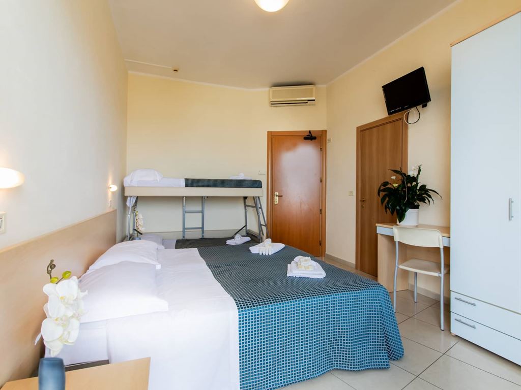 dvoulůžkové pokoje jsou jednoduše a vkusně zařízeny, některé s možností jedné až dvou přistýlek formou samostaného lůžka nebo patrové postele. Součástí vybavení je šatní skříň, TV, fén, klimatizace v ceně pobytu, sociální zařízení (umyvadlo, WC, sprchový kout), balkon.