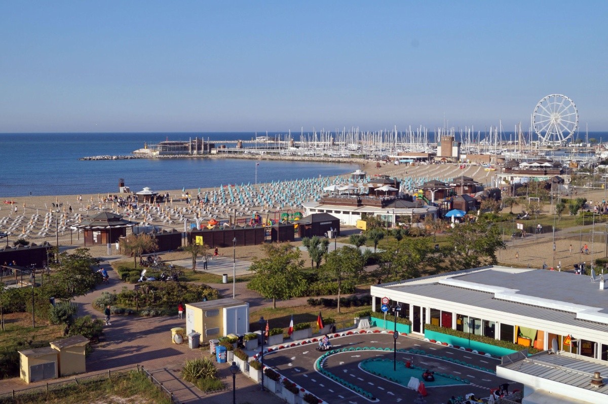 Menší velmi kvalitní hotel se nachází na italském pobřeží letoviska Rimini - San Giuliano (necelých 1000 m severně od centra města) a poblíž jachetního přístavu, jen 50 m od široké písčité pláže (veřejná pláž 500 m, Arenas parco Acquatico 1500 m). Okolí hotelu tvoří obytná čtvrť s hotely, obchody, restauracemi a plážovými atrakcemi. Na pláži jsou animace a v městečku v dosahu pěšky jsou zábavní akrakce.