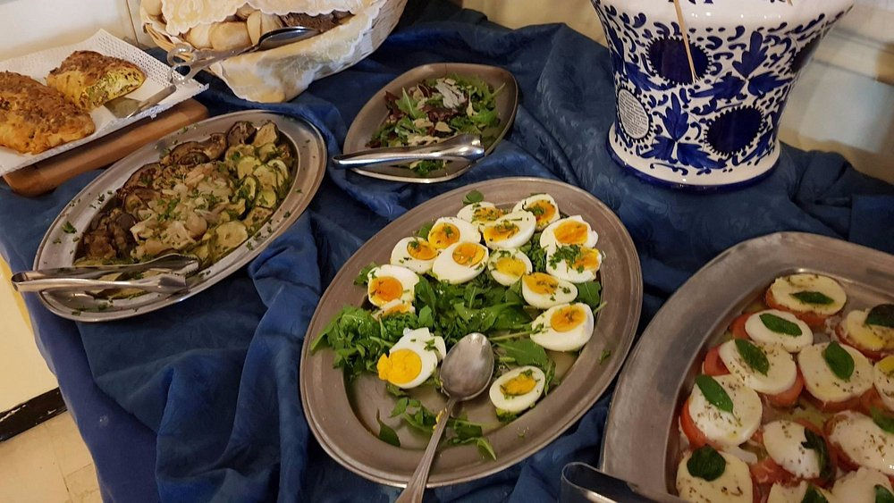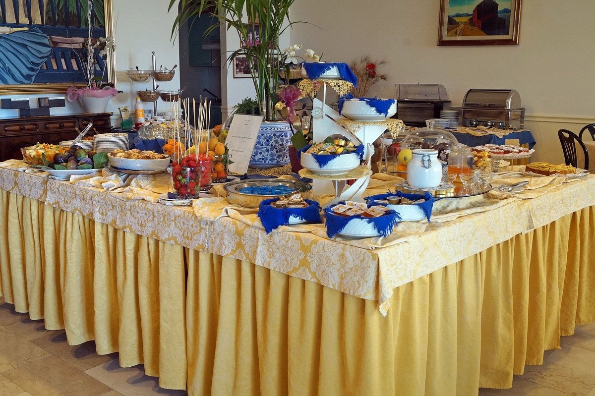 První chod (předkrm) je polévka nebo těstoviny, druhý chod je maso nebo ryba (podává se s chlebem), třetím chodem je dezert, který je většinou jednotný.Současně bývá k dispozici salátový bufet, jehož součástí bývají i různé přílohy, např. grilovaná a smažená zelenina, bramborový salát, krokety nebo hranolky.