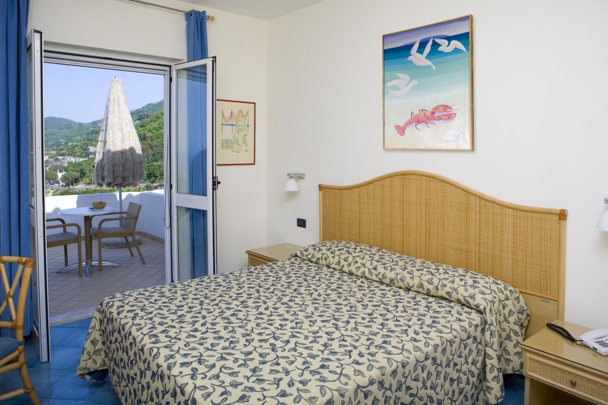 • 16–20 m², dvoulůžkový pokoj, výhled na moře, sprcha, fén, klimatizace, cca 15.6.–15.9., minibar (za poplatek), trezor, TV, Wi-Fi, balkon nebo terasa