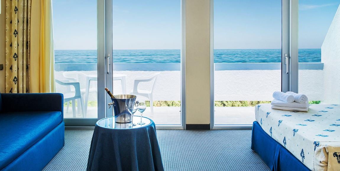 Hotelové pokoje jsou zcela nově vybavené a nacházejí se v hlavní budově, 200 m od pláže. Mají vlastní příslušenství, telefon, TV sat, klimatizaci, minibar a terasu se zahradním nábytkem a s výhledem na moře.