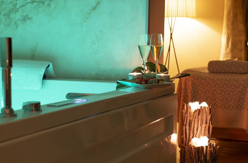 K dispozici je vyhřívaný vnitřní bazén (145 m2, voda o teplotě 32 °C) a venkovní bazén, dále vířivky a krční vodopády.