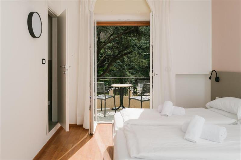 D2 Standard Double: cca 18 m2. Každý pokoj je vybaven manželskou postelí nebo dvěma samostatnými lůžky, klimatizací, Wi-Fi, psacím stolem a vlastní koupelnou s kompletně zrekonstruovaným sprchovým koutem. Všechny pokoje mají balkon se stolem a židlemi, ideální pro relaxaci venku, čtení, snídani nebo jen pro kochání se výhledem do parku.
