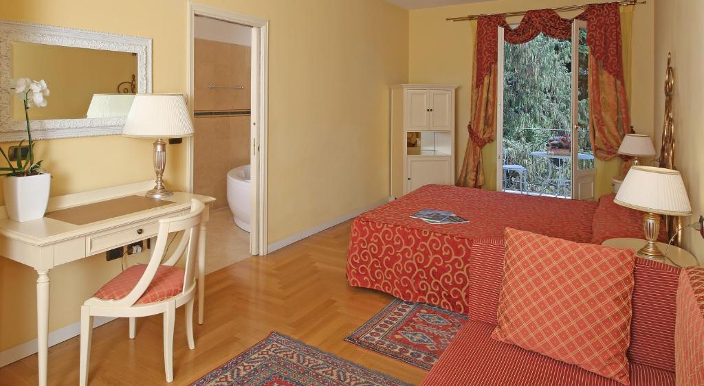 Hotel má 34 pokojů, rozdělených do kategorií Classic, Superior a Deluxe, všechny zařízené v secesním stylu a vybavené moderním komfortem, jako je klimatizace, bezplatné Wi-Fi, satelitní TV, minibar, trezor a vlastní koupelna s fénem a toaletními potřebami. Některé pokoje nabízejí výhled na jezero nebo do zahrady.
