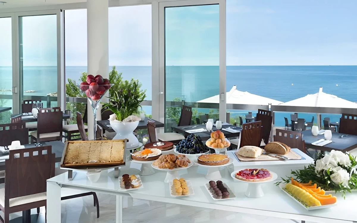 - hlavní restaurace: druhy kuchyně: mezinárodní, italská, středomořská, regionální, ryby/mořské plody, grilovaná jídla, biopotraviny, bezlepková jídla, dětské menu, lehká jídla, sezónní jídla, vegetariánská jídla, veganská jídla, formou bufetu, výběr z menu, show cooking, klimatizace, dětské židličky