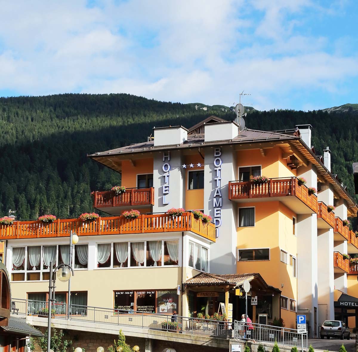 Rodinný hotel je situován v centru střediska Andalo. Nástupní stanice lanovky je vzdálena přibližně 100 m. Paganella patří k menším, ale moderně vybaveným italským střediskům, jehož součástí jsou střediska Fai della Paganella, Molveno a Cavedago.Středisko Paganella 1.028 – 2.125 m.n.m, převýšení 1.097 m - disponuje sjezdovými tratěmi o celkové délce 33,8 km, z toho 1,2 km černých, 23,8 km červených a 8,8 km modrých. K přepravě slouží 2 kabiny, 9 sedaček, 3 vleky, o kapacitě 27.200 osob /1 hod. Dále lze využít běžecké tratě v celkové délce 48 km a snowpark.